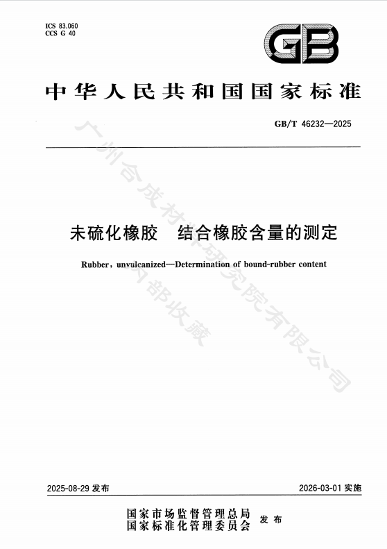 GB/T 46232—2025《未硫化橡胶 结合橡胶含量的测定》 首次将低场核磁法与化学法并列,官方认可核磁法的科学性与可靠性。标准指出:低场核磁法测得的是“产生物理吸附和化学键合吸附作用的那部分橡胶”。