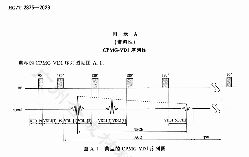 测试原理: 在 以上消除残余偶极矩,各向异性率仅与交联程度相关。采用 CPMG-VD1 序列测量分子链段的各向异性率和横向弛豫时间,通过修正的单链模型(XLD)计算交联密度特征值 (mol/cm³)。测试温度:天然橡塑材料 (60.0±2.0)℃;其他橡塑材料 (90.0±2.0)℃。精密度要求两次独立测试结果差值 ≤ 算术平均值的10%。